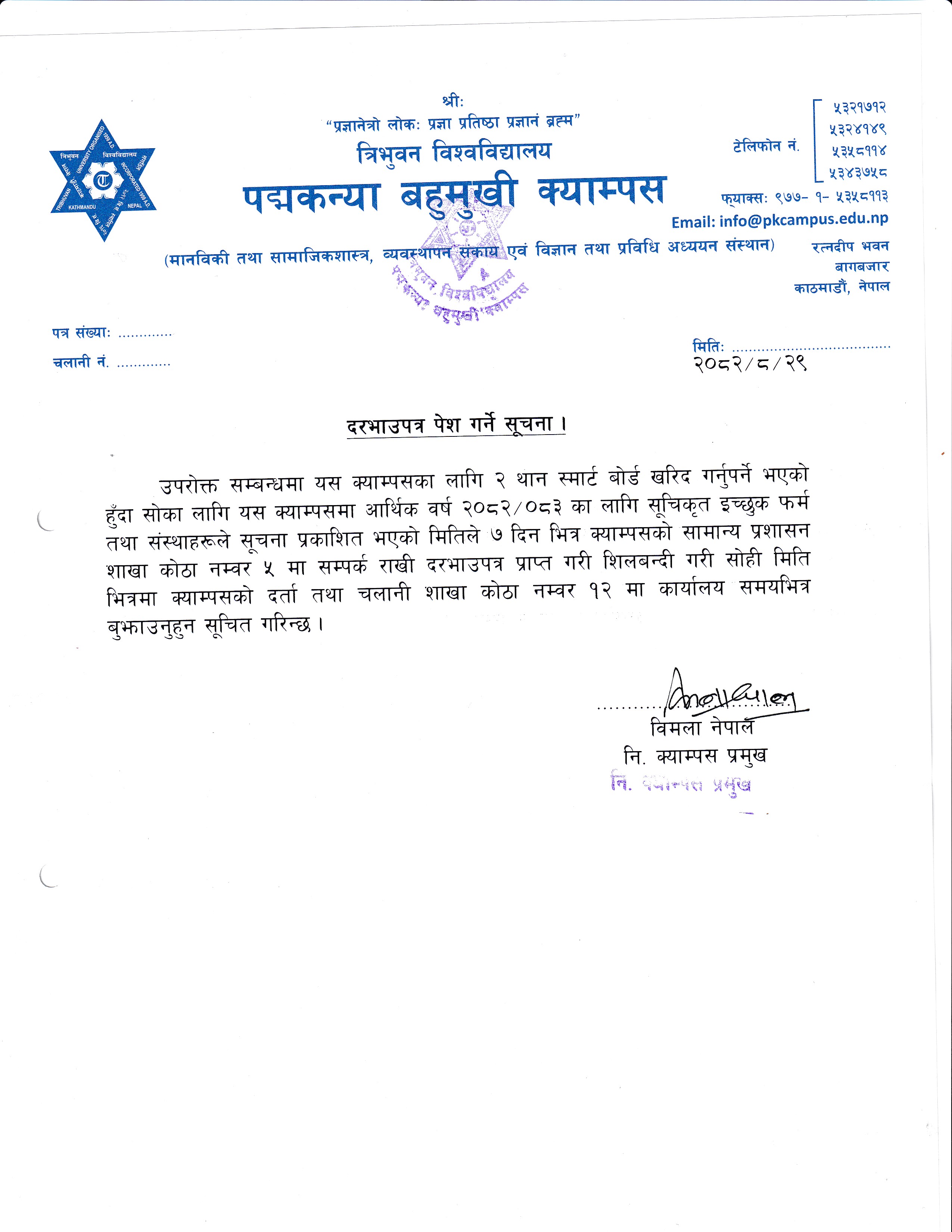 शिलबन्दी दरभाउपत्र पेश गर्ने सूचना