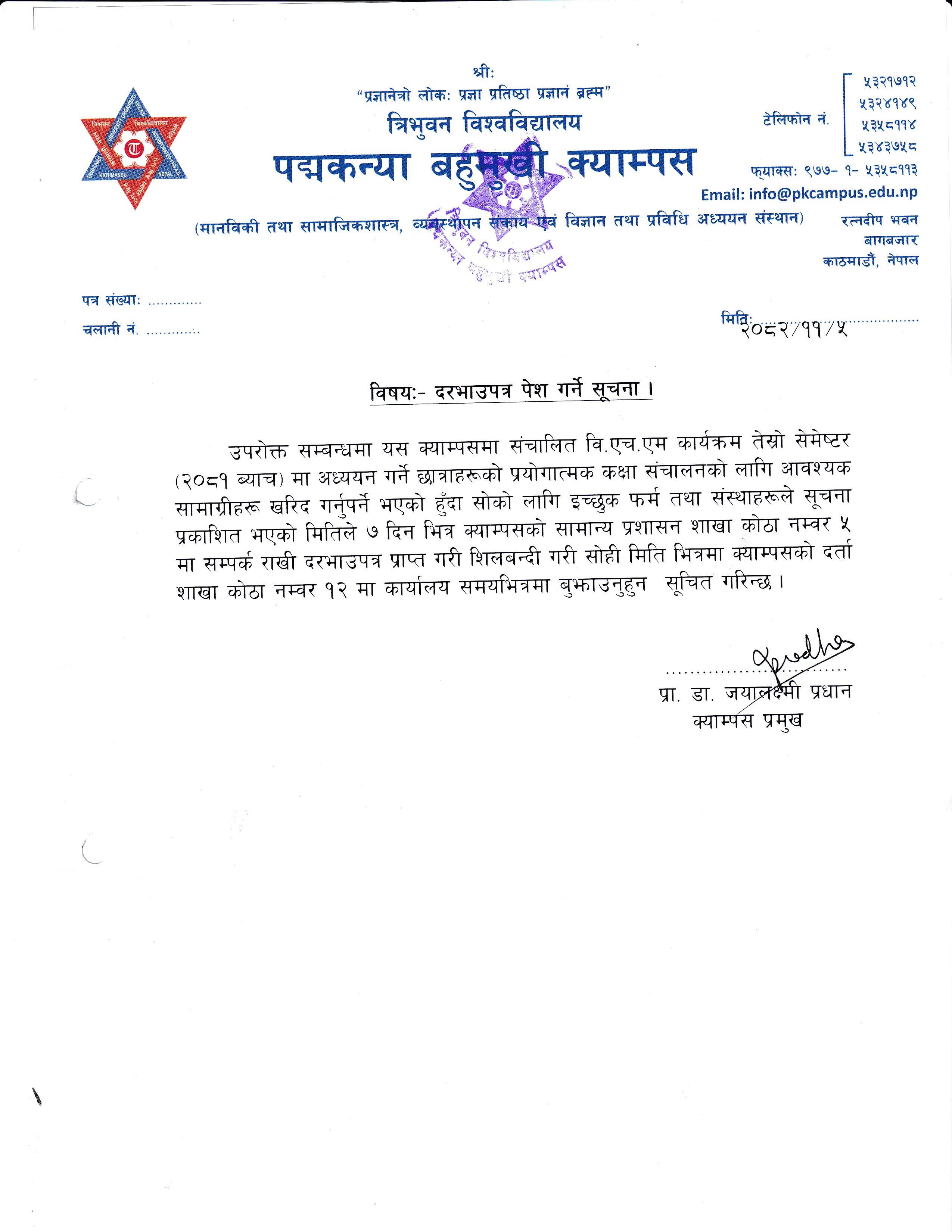 दरभाउपत्र पेश गर्ने सूचना