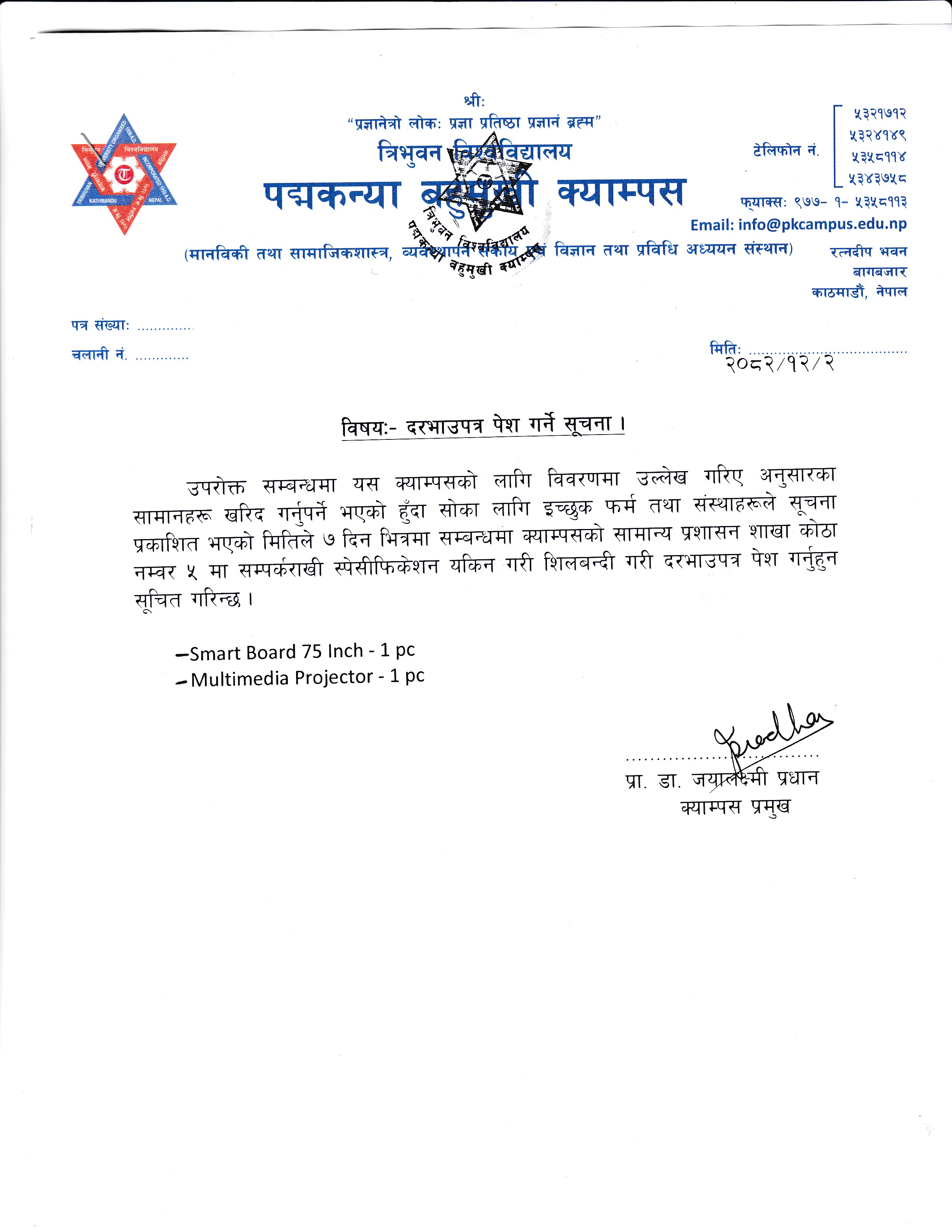 दरभाउपत्र पेश गर्ने सूचना