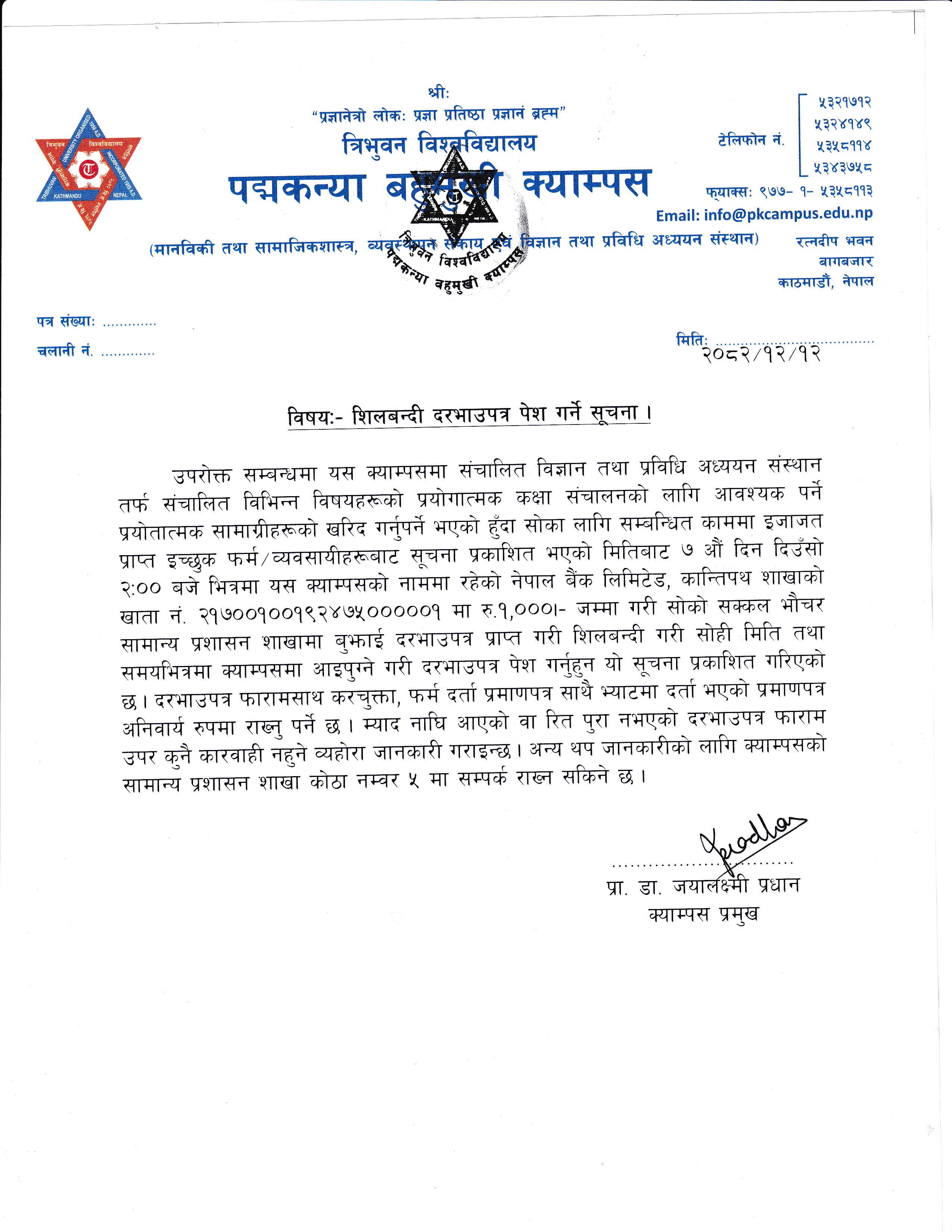 दरभाउपत्र पेश गर्ने सूचना