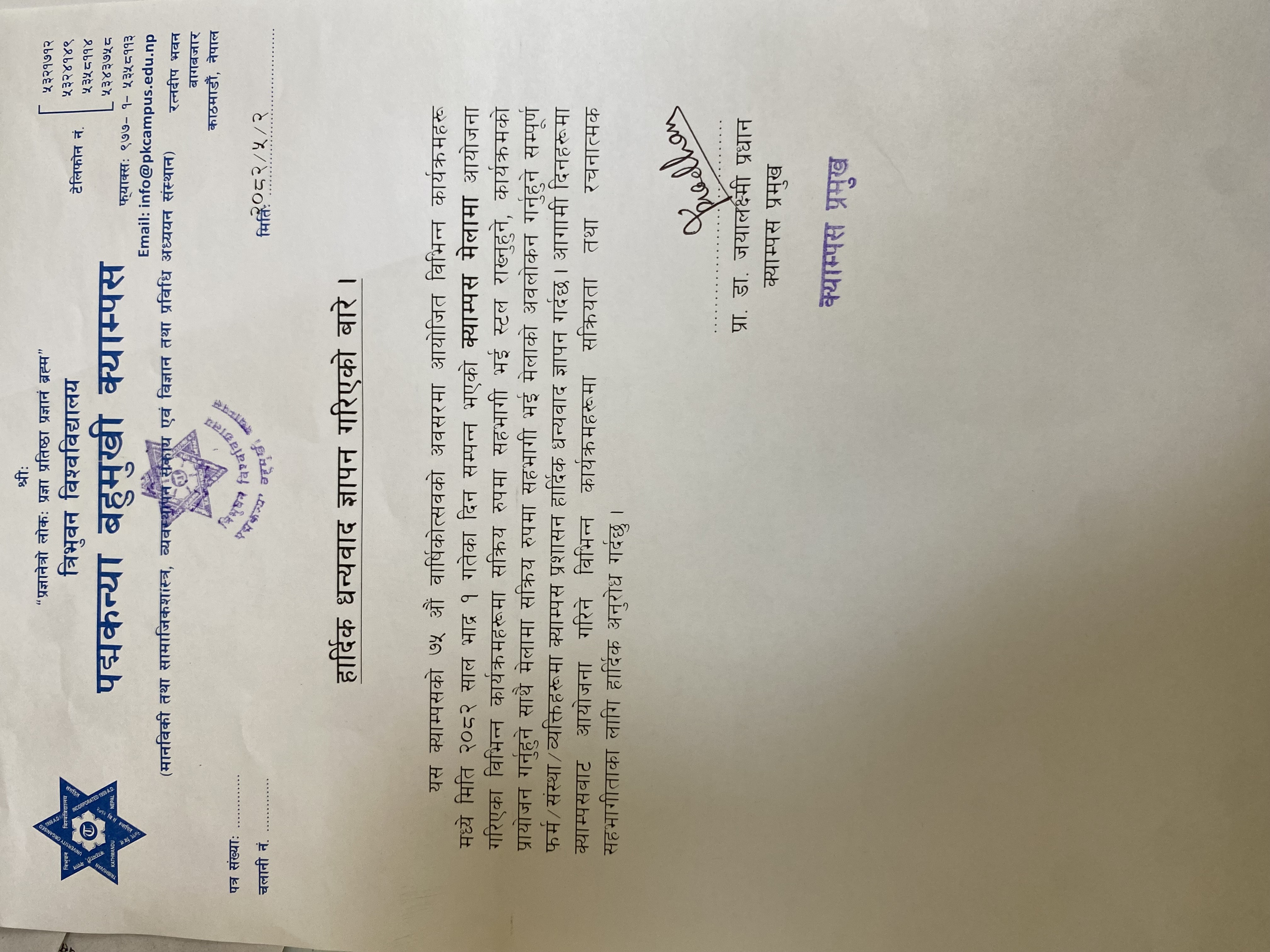 हार्दिक धन्यावद ज्ञापन गरिएको वारे